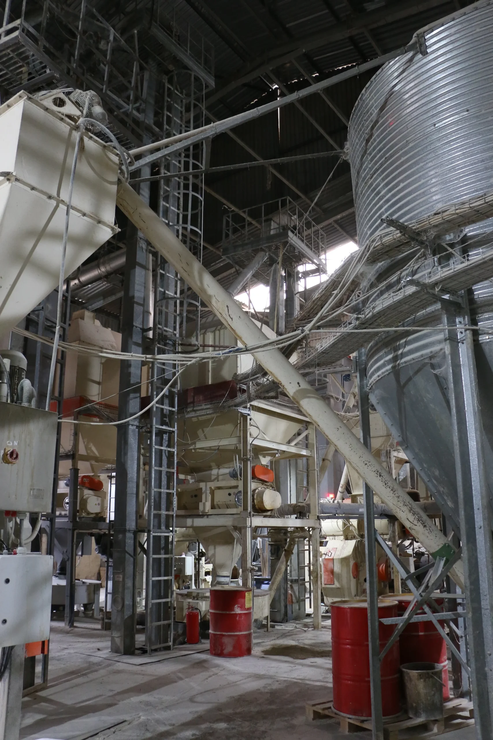 Our factory features modern infrastructure and advanced production lines to meet the local market’s needs for feed. The factory includes silos and hangars for storing raw materials and warehouses for storing finished feed, with specialized production lines for crushed and pelleted feed, operating in shifts to ensure continuous production.
